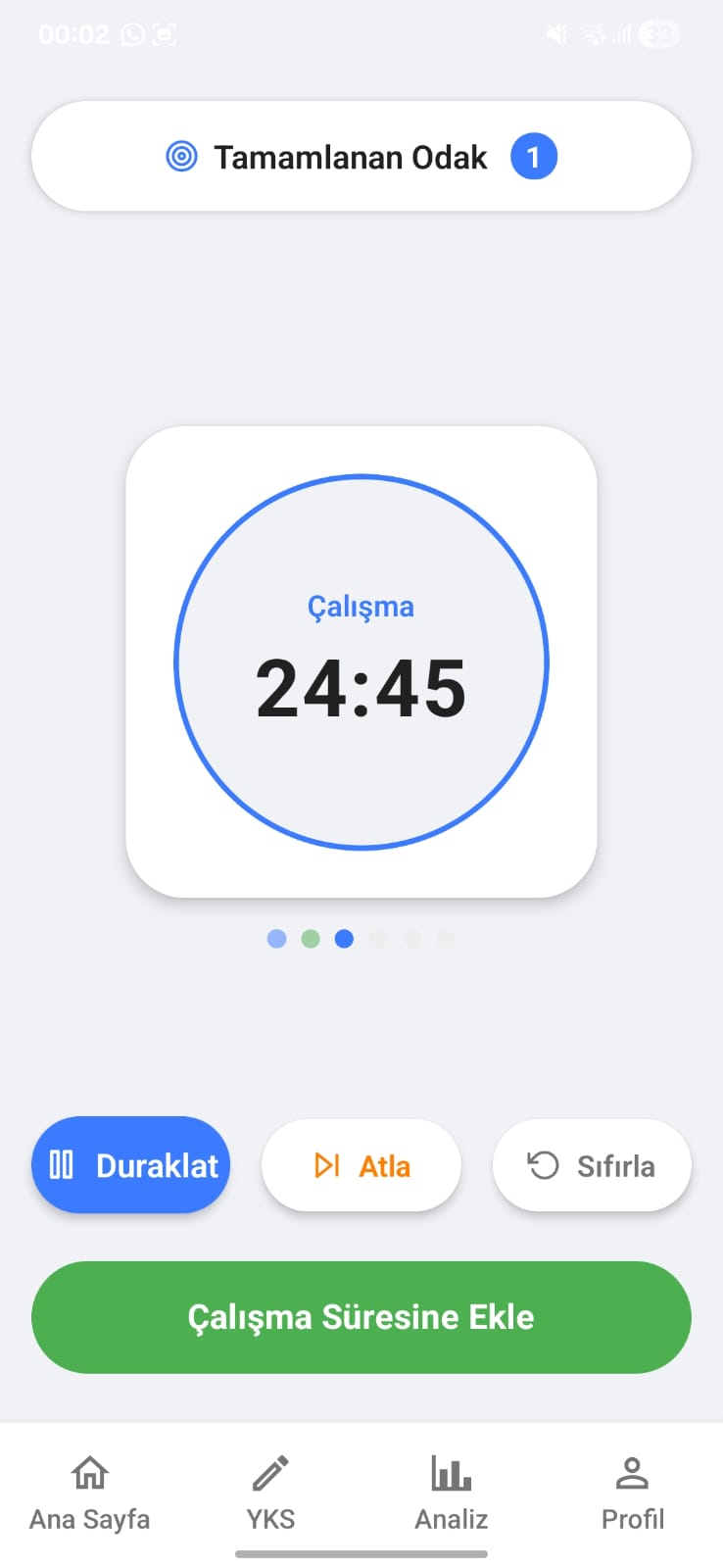 Günlük hedefler, konu takibi, detaylı analizler ve zaman yönetimi araçları. YKS sürecini şansa bırakma, verilerle yönet.